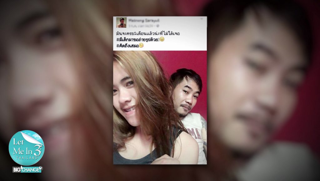 贝于今年遇到生命中的摰爱,27岁男子农(Nong)并不介意她的过去,更用心照顾她的儿子,也从未批评过她的外表。两人相处3个月后,Pui通过《Let Me In Thailand》获得了前往韩国整容的机会,她希望男友能看到变美后的她。在分隔两地的日子,二人靠短讯联络,农每次都会写一句「等你」,相当甜蜜。