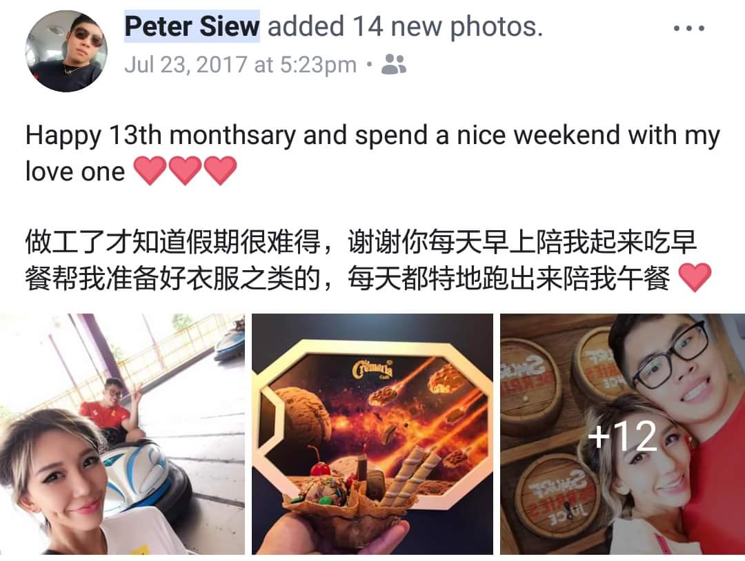 ▼网友也截图出渣男曾经po的“晒恩爱”照~