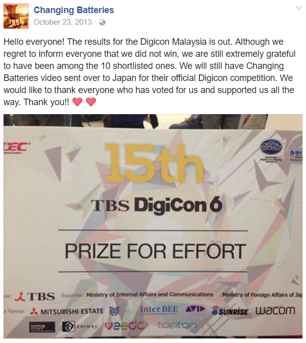 2) 15th DigiCon6 (Malaysia) – Prize for Effort, Top 10 Shortlisted.