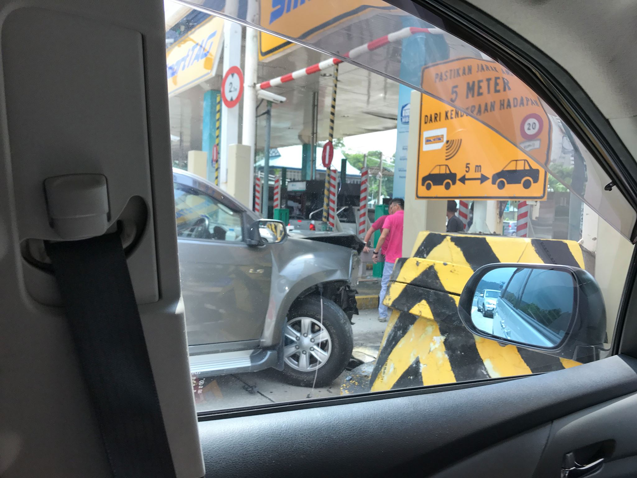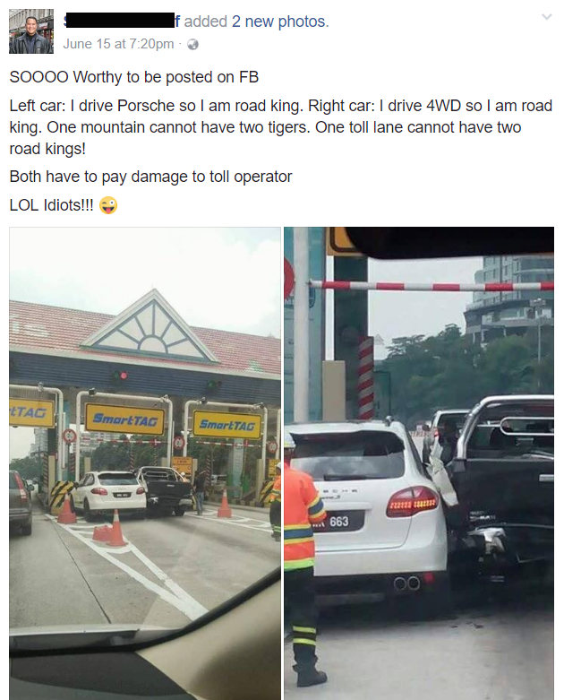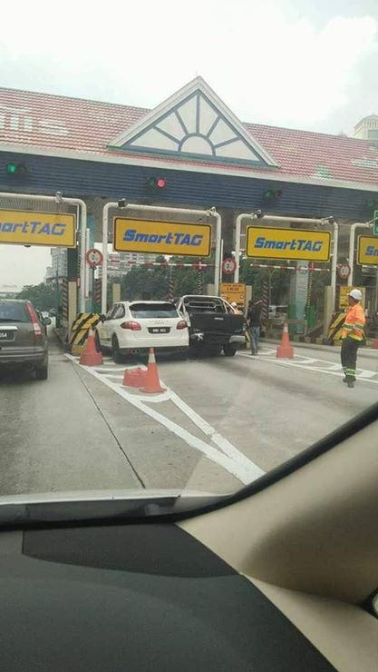 ▲ 日前有位网友上传了精彩的一幕与玩网友们分享,那就是Porsche VS 4WD 撞坏了Smart Tag 车道!