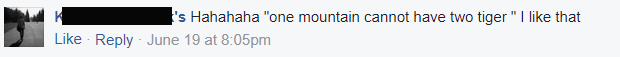 ▼ 不到一会就多了很多留言,不是因为精彩的那一幕,反而是发帖者劲赞的描述:一山不能藏二虎 =1个toll不能容2 Road King