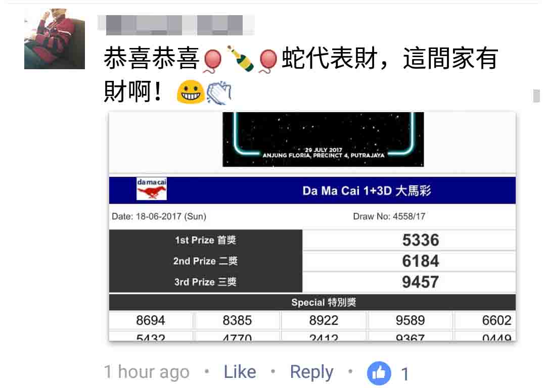 ▼这时…有人就恭喜这名男子,还 PO 出了马票期?是什么号码呢?
