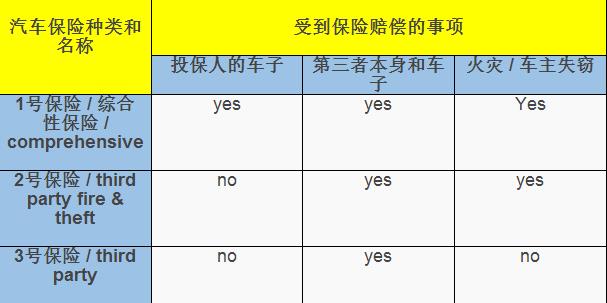 如果你购买3号保险,那你的车子不能获得赔偿,你的保险公司会赔钱给B。如果你的车子被偷或发生火灾,你不会获得赔偿。