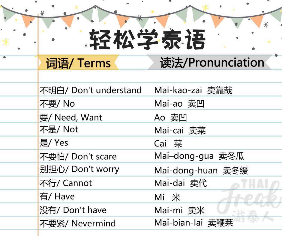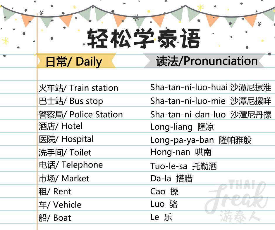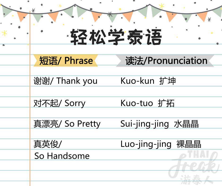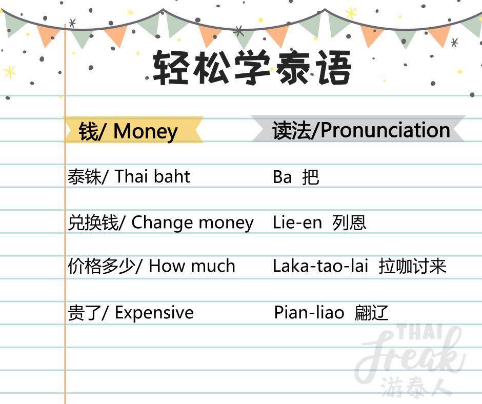 in 分享, 知识, 首页 想去泰国旅游, 先学泰文吧!! by RedChili June 13, 2017, 11:37 am ▼问候/Greetings ▼词语/Term ▼短语/Phrase ▼词语/Terms ▼日常/Daily ▼ 口味/Flavor ▼ 钱/ Money 资料来源:游泰人 Leave a Reply Cancel replyYour email address will not be published. Required fields are marked *Comment * Name * Email * Website Next post