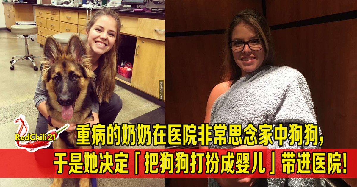 对家裡有养毛小孩的人来说,一定懂那种要跟它们分离时最不舍的心情了!美国加州一位21岁的女孩雪比(Shelby Hennick)因为奶奶住院,知道她很思念自家狗狗,就用了一点小聪明把狗狗带进去,当奶奶与狗狗重逢时,那个画面真的很令人感动啊!!