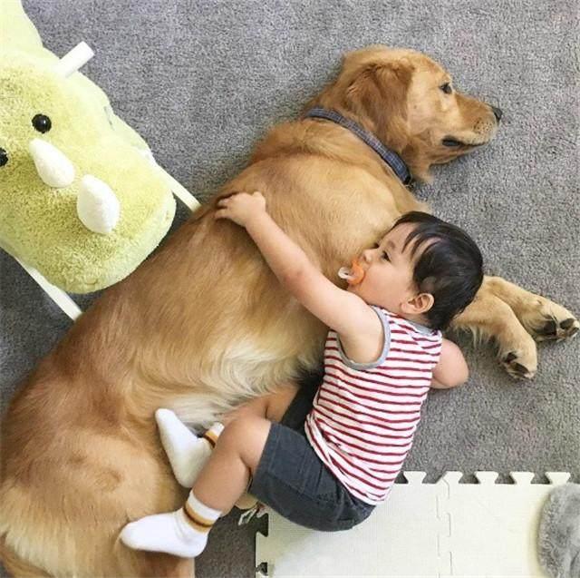当宝宝一岁多的时候,一天女主人去上卫生间,顺口对金毛说:帮我看好宝宝哦!