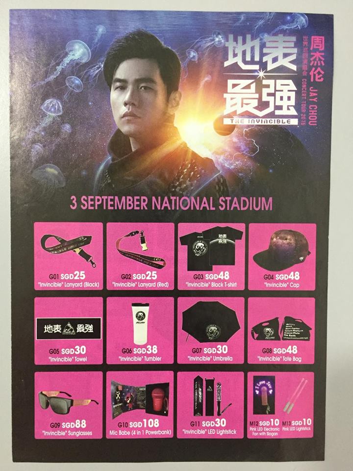 ▼ 周杰伦 2016《地表最强 》新加坡站周边产品的价钱表
