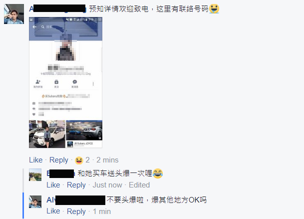 ▼ 有网友留言说女事主是卖车的, 但和她买车送头爆一次 (应该是开玩笑)