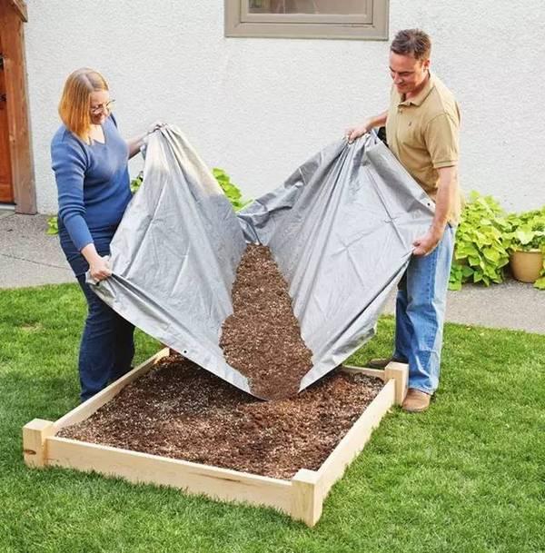 选一个合适的地方,那里每天都有6-8个小时的日照,周围没有树木遮荫,地面不会积水。至于土质却不重要,因为我们不用原来的土栽种。在木板底部铺上钢丝网,然后用一份堆肥、一份泥炭苔、一份蛭石混合成种植土,装入木板箱中。如果弄不到泥炭苔和蛭石,可以用沙子代替蛭石,用消毒过的普通土代替泥炭苔。