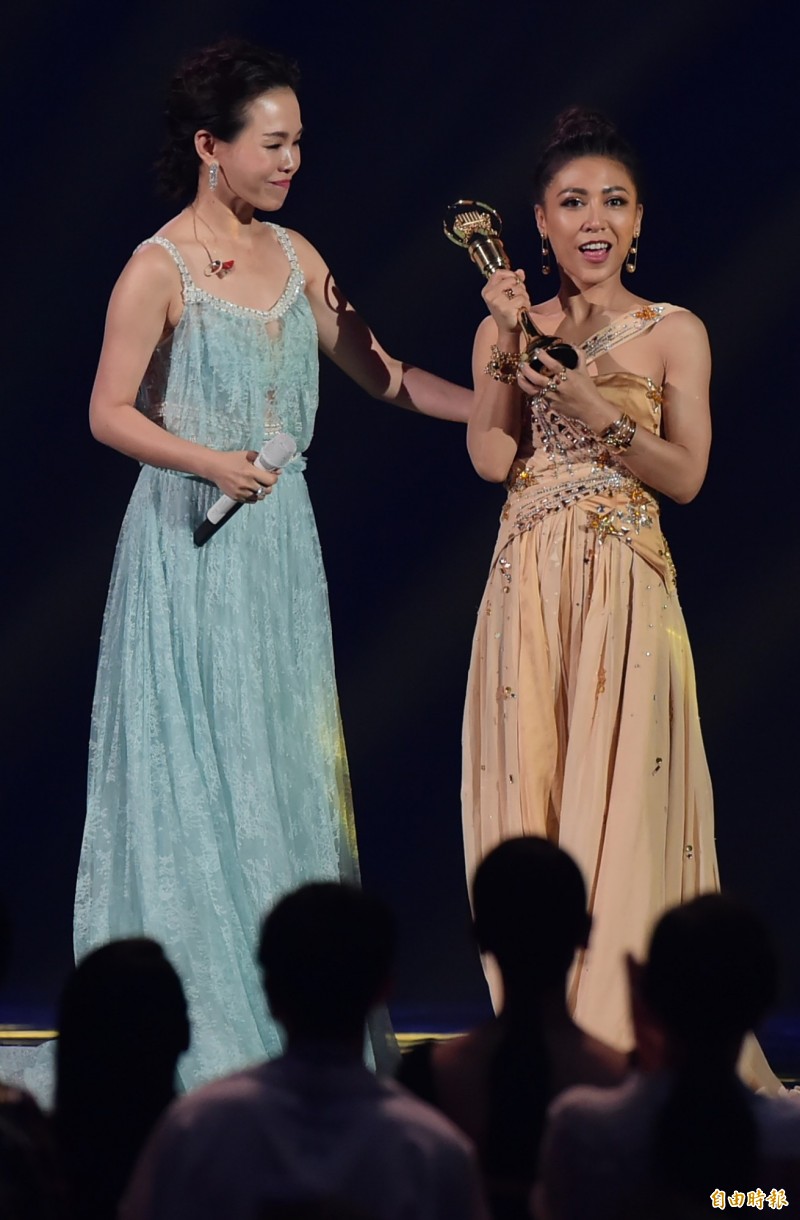 ▲ 彭佳慧(左)颁奖给艾怡良。(影视中心摄影组摄)
