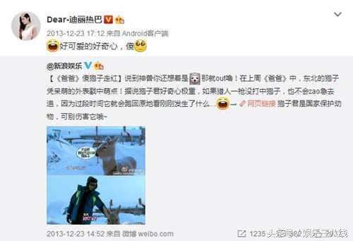 ▼ 那時的迪麗熱巴還沒有活潑在螢屏上,但她那時卻表達了自個對傻狍子的喜歡,提到「好可愛的好奇心,傻」。