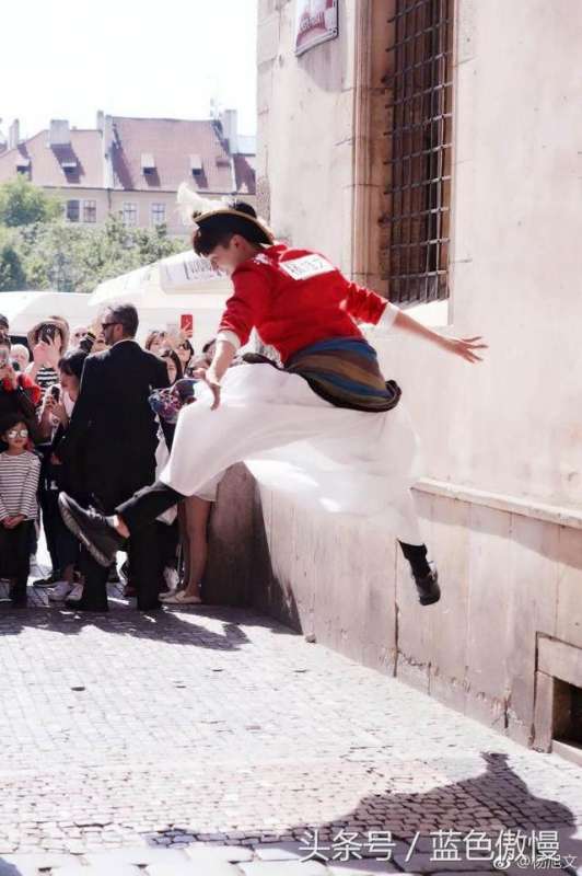▲▼圖片中,楊旭文頭戴捷克禮帽身著紅色T恤配上白色調檔褲裙,跳躍起來的姿勢真的好帥。被網友戲稱為「白馬王子」,就不知道能不能得到公主的青睞?