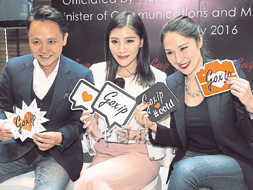 ▲陈雪铃(中)与2位Goxip联合创办人柳宇澄(左)和詹明月,出席Goxip媒体推介礼。