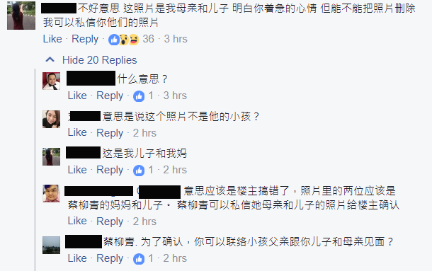 ▼ 下面这位网友蔡女士说拍到的照片是她的母亲和儿子, 也有其他网友支持她的说法说Mr Lam搞错了。