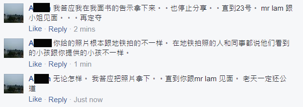 关于分享照片是出于一片好心,但如果当事人说了不是就要拿下照片,23号蔡女士出差回来会跟Mr Lam见面解释。