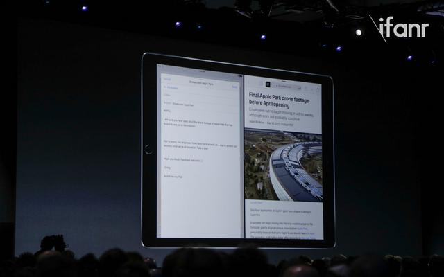 任务切换界面也不再是 iPhone 上的翻版,可以直接从 Dock 栏拖拽 app 打开为多任务窗口,平铺式的 app 布局更适合大尺寸屏幕。