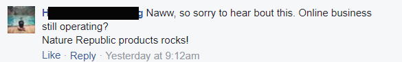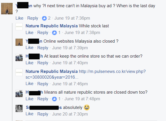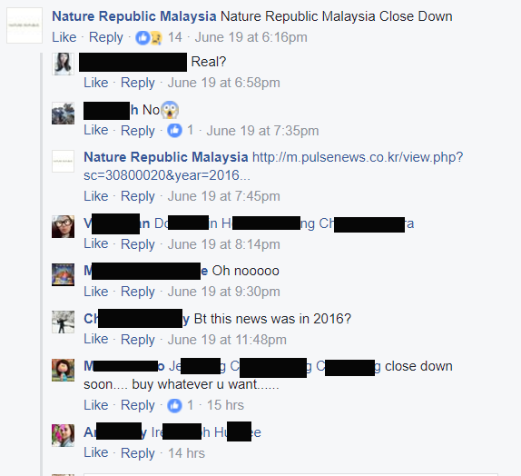 ▼ 网友们都纷纷留言为是什么原因要关闭所有分行,Nature Republic Malaysia 刚开始的留言是叫网友们自己去判断。