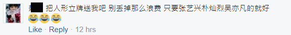 ▼ 最后这位的网友的留言让小编我也笑了,她竟然是要Exo 的人形立牌….. 哈哈哈!!!