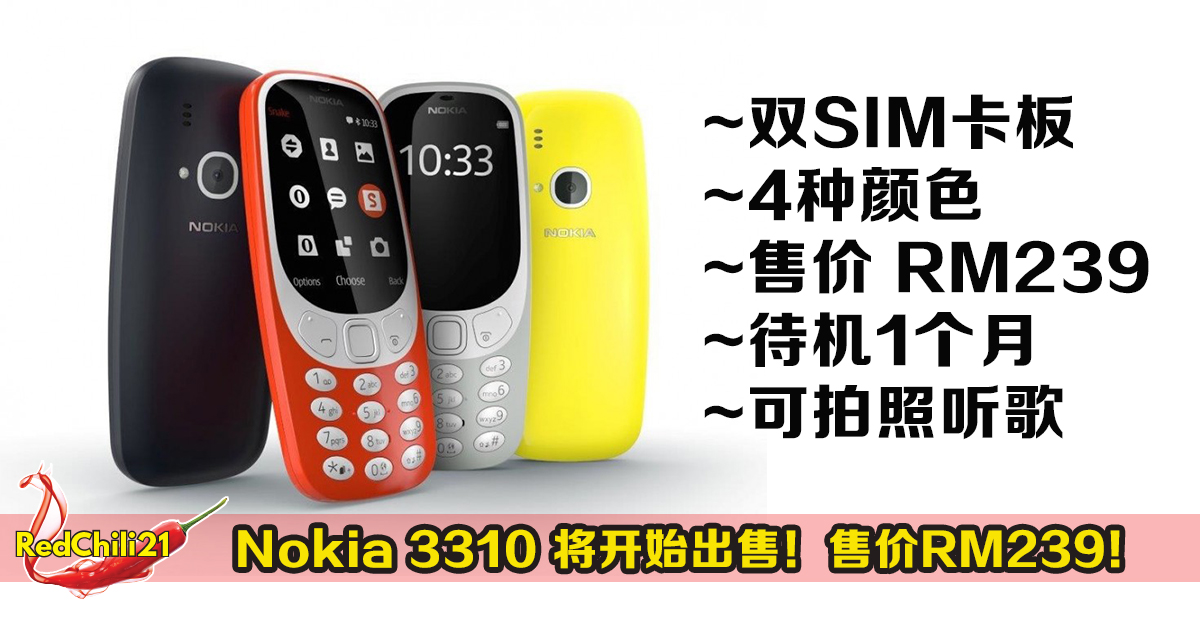 新款Nokia3310 在外型上修整的更为圆润,售价49欧元(马来西亚官方售价239令吉)依然便宜、「看起来」很勇健、具备怀旧的铃声以及贪食蛇游戏等特色。