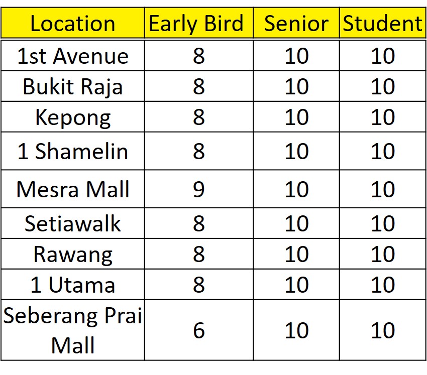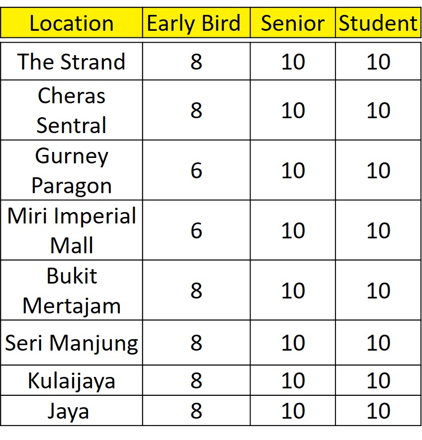 而Student price促销是weekdays时,下午6点之前的戏票一律只需RM 10