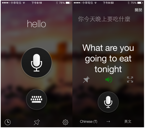 - 可以选择要文字翻译或是语音翻译,介面设计直觉