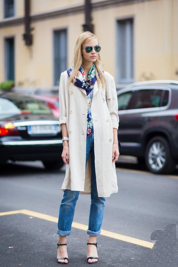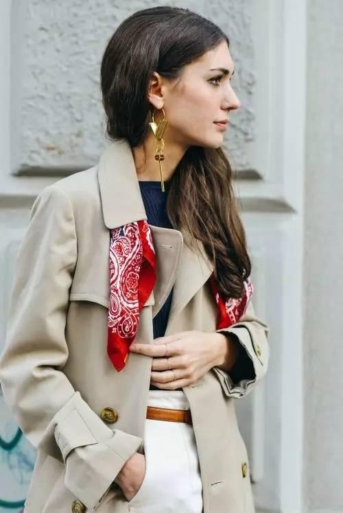即使随随便便一块小方巾搭在风衣上,也是极美的。