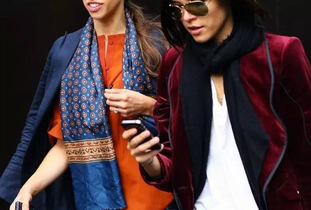 小方巾在这两年里的时髦度翻了倍,大家都在追逐这个潮流。