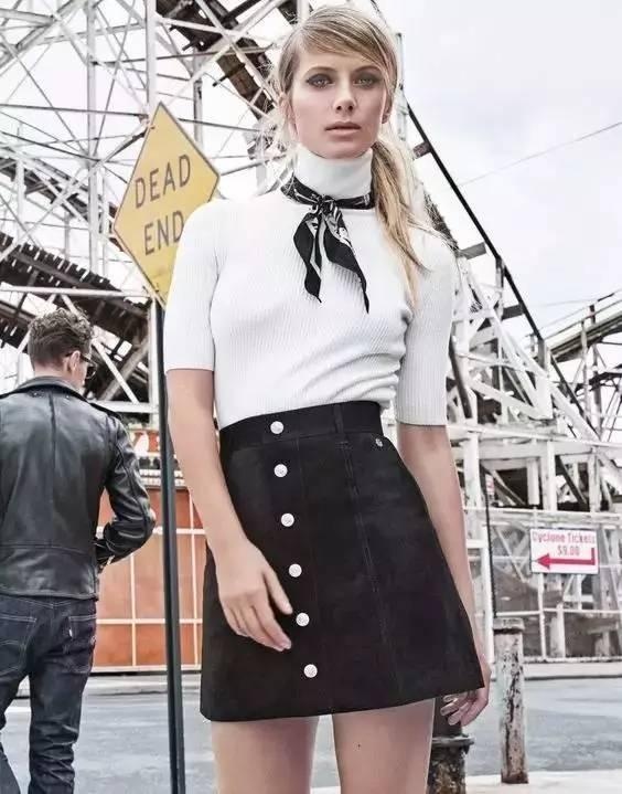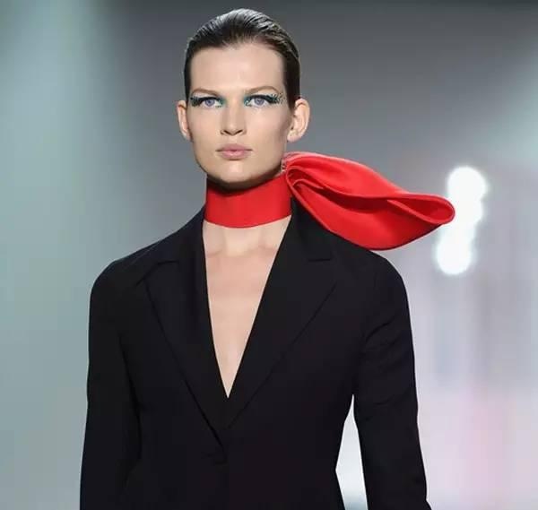 今季最时髦的Choker也可以是一条丝巾。打法其实很简单,找一条的方形丝巾在脖子上绕两圈后,于侧边打一个结。可以大胆地寻找一些色彩鲜艳的印花,配上素色或黑上衣,能简单又快速地出门,造型也更有层次。