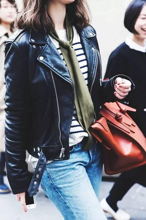 如果系法得随意点,也能有不同的效果。方巾也能打造这样的风格。