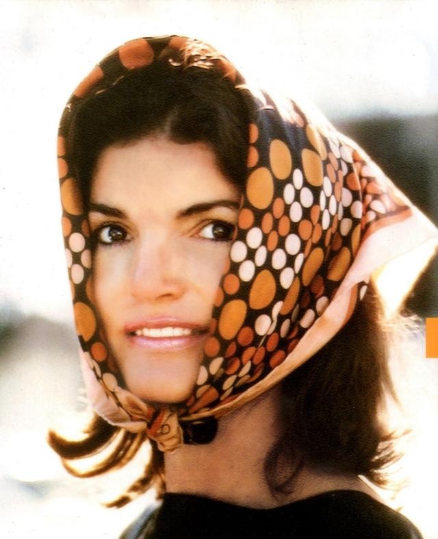 时尚风向标——美国前第一夫人杰奎琳•甘迺迪•奥纳西斯(Jacqueline Kennedy Onassis)也酷爱将丝巾做头巾的系法,且更为简单利落。为了躲狗仔,前第一夫人还採用过「海盗」头巾样式包头。为了躲狗仔,前第一夫人还採用过「海盗」头巾样式包头。
