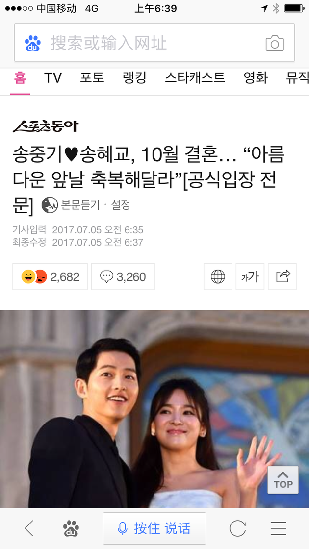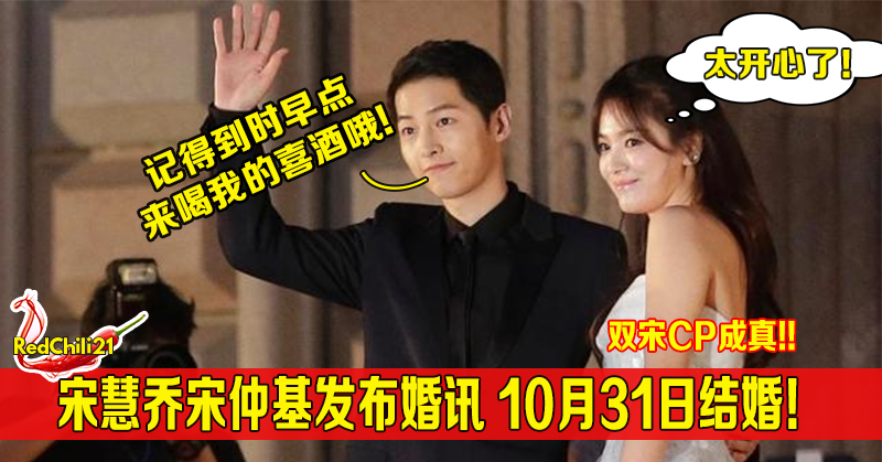 不过事情发展突然嚟个大逆转,宋仲基与宋慧乔所属的Bloosm事务所及UAA事务所,今晨宣布「双宋」的婚讯,他们首先感谢韩国及海外大家对两人的关注和爱戴,并希望大家谅解他们宣布得这麽突然,宋仲基与宋慧乔将于今年10月的最后一天举行婚礼,结婚除了是两个人的事,也是两个家庭之间的结合,因为多种理由而非常小心翼翼,在走到结婚阶段之前都非常慎重,所以到现在才将消息告知大家,事务所又希望大家能为两人的美好将来送上祝福。