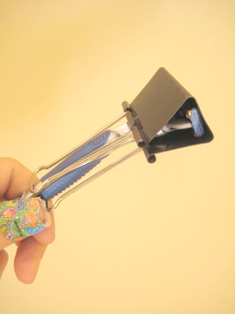 旅行打包,剃刀是不论男女都需要的有用货,可是并不是每款剃刀都有配套的盖子,怎么办?一个燕尾夹就搞定啦~