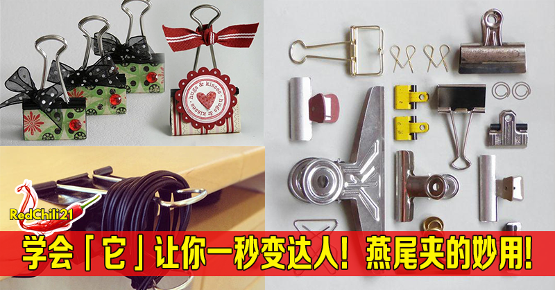 燕尾夹的功能还不只如此,他还可以化身为「置物架」,你可以把比、橡皮筋等等这些阿杂到不行却又不可或缺的生活小物,通通用燕尾夹来做收拾,虽然载重量上有很大的限制,但比起要去专门店买个收纳盒,燕尾夹还是「应急界」的第一把交椅啊!