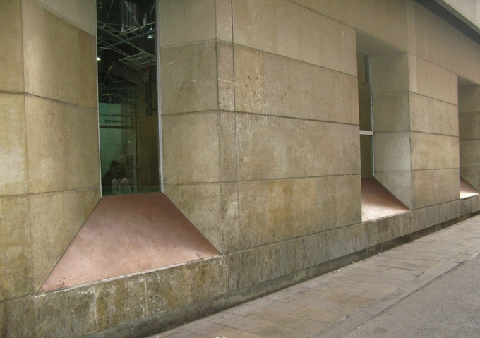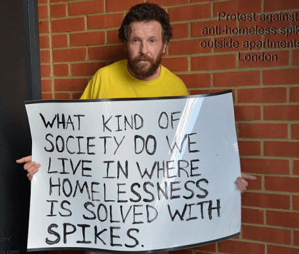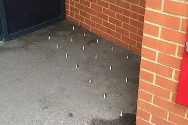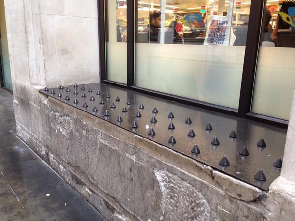 ▼伦敦:墙角的倒刺,这样游民就不能在这里睡觉了。