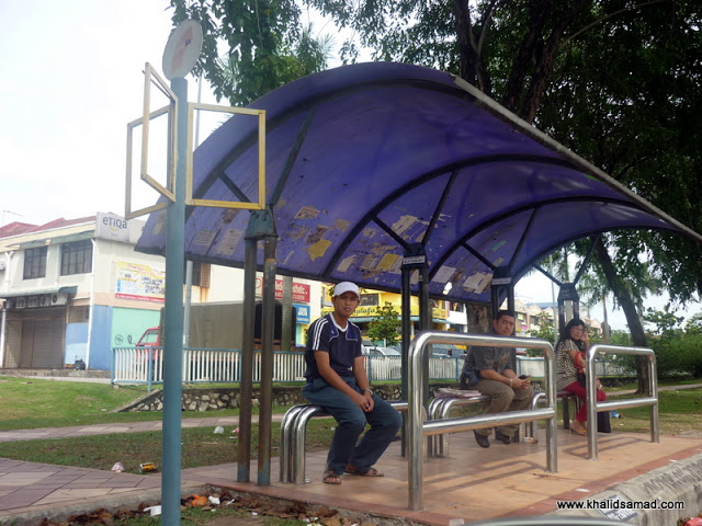 ▼马来西亚: 铁条状的分隔的等座只能让你能暂时性的坐着等巴士,绝不能长时间坐着或躺着!