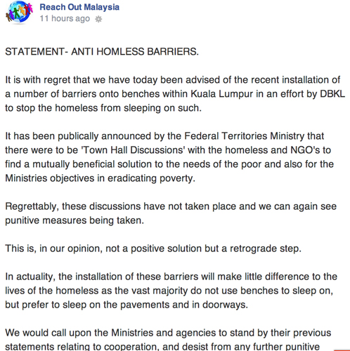 ▼马来西亚, 吉隆玻: 巴士的等座上有凹凸起来是用来以防流浪汉躺着睡觉!