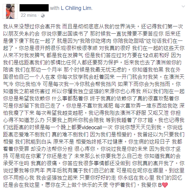 ▼ 小弟的女朋友也在面子书上传了她们之前的合照和写下她们俩的点点滴滴,句句都让人看了心酸落泪!