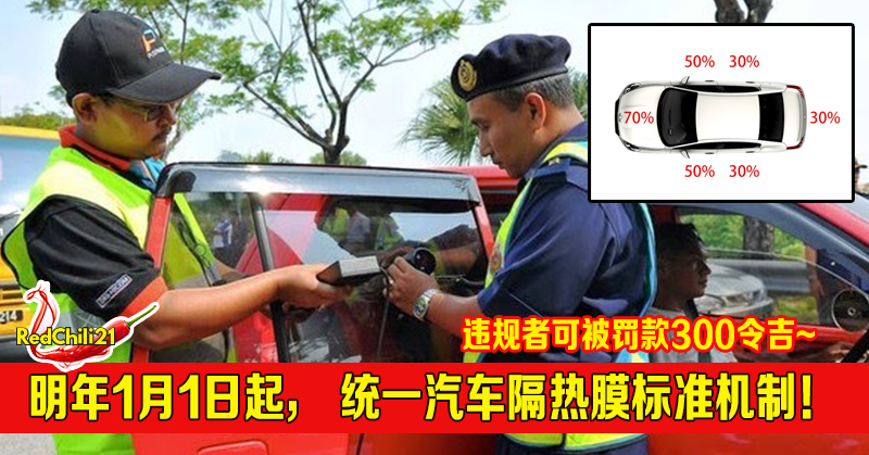 他说,任何不符合当局规定的前镜70%丶侧镜50%和後镜30%透光度标准的车主,可被罚款300令吉。