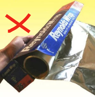 几乎什麽牌子的铝箔纸包装盒两端都有孔.把纸向内推就能固定铝箔纸在盒子裡.接着就把你需要的长度拉出来在开口那边切断就好了!