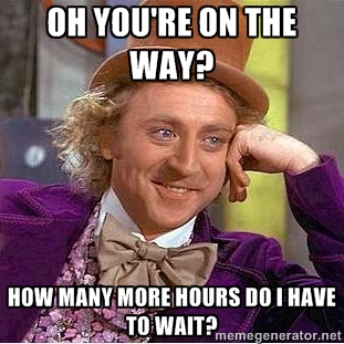 这一般是用在约人yum cha 后还迟迟不出门的人,当朋友到了信息问到,这些人就会回复 on the way (来着)!