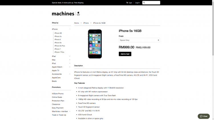 另外,发布四年的iPhone 5s目前售价也被砍至RM999,配色方面有黑色和银灰色两种,当然也支援更新至iOS 11哦!