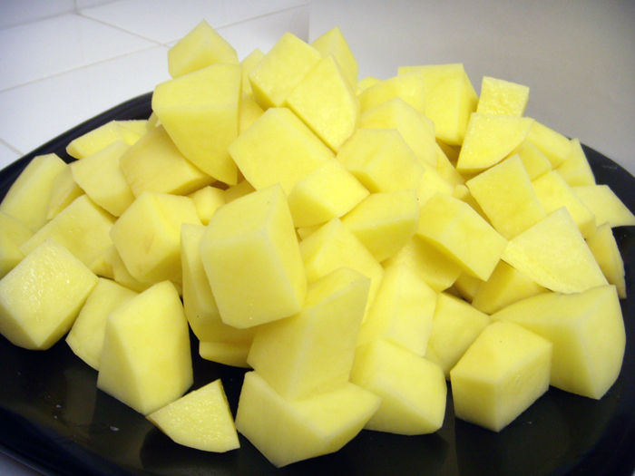3. 煮熟后,等它们冷却,再削皮、切成壹片片。