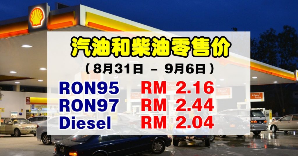 【8月31日 – 9月6日 汽油和柴油零售价出炉了!】