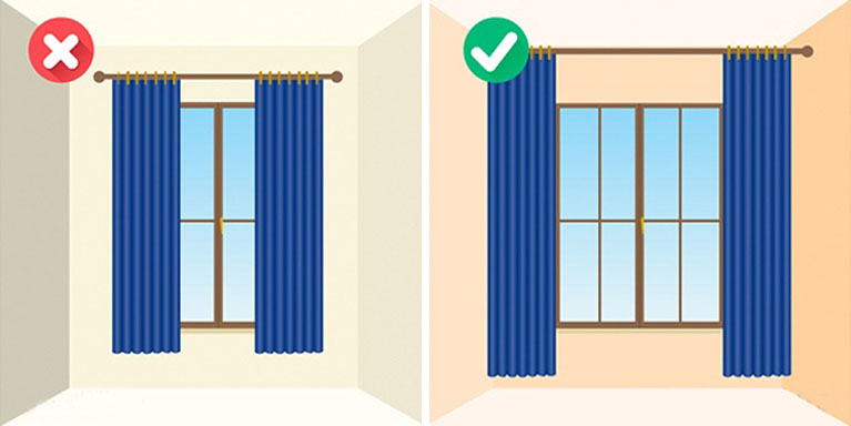 窗帘的设计和窗户不一定要一致,把窗帘弄得更宽一点,才不会在好天气的时候遮住光线,同时也会让窗户看起来更大。