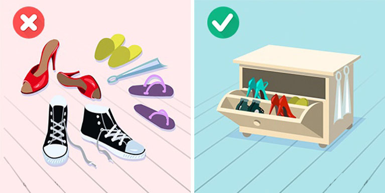 散落一地的各式鞋款,某种程度上佔了很多的空间。为了不让鞋子佔据你的室内空间,你可以用鞋架或鞋柜收纳起来。