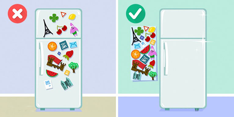 你是否有在冰箱上放磁铁的习惯呢?让冰箱门上充满磁铁,不仅会让冰箱本身看起来非常杂乱,视觉效果上也会使冰箱变小。如果你能把磁铁放到另外一个地方去,并且让他们看起来井然有序,这样就能让冰箱和厨房看起来一目了然!