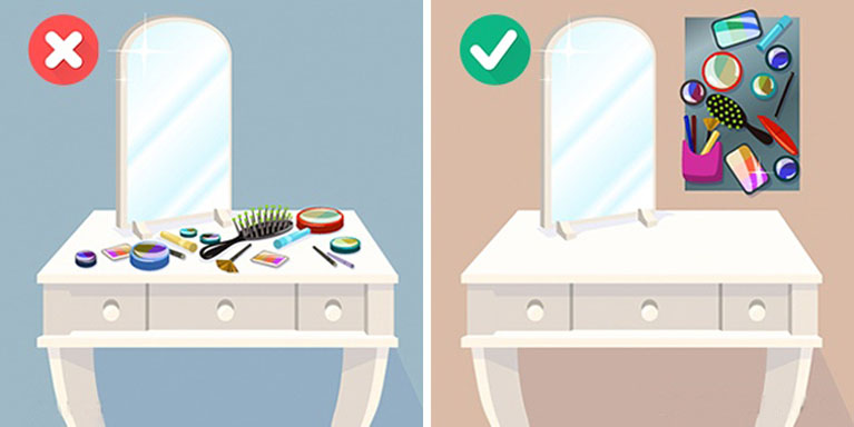 化妆品也同样需要被收纳,将它们透过磁铁板或是小抽屉,依照功能和大小好好摆放。