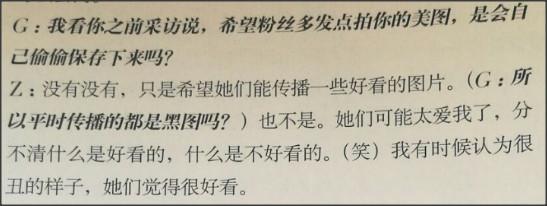 你希望粉丝多发你的美图?“他们分不清楚什么是好看的,我认为很丑的样子,他们觉得很好看。”