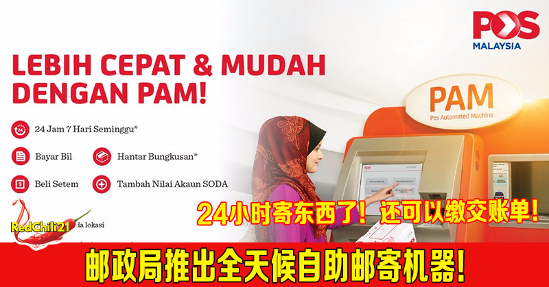 想要邮寄东西,但没办法在办公时间前去邮政局?没关系,马来西亚邮政局目前已经推出了自助邮寄机器POS Automated Machine (PAM),让你24小时都可以邮寄包裹!