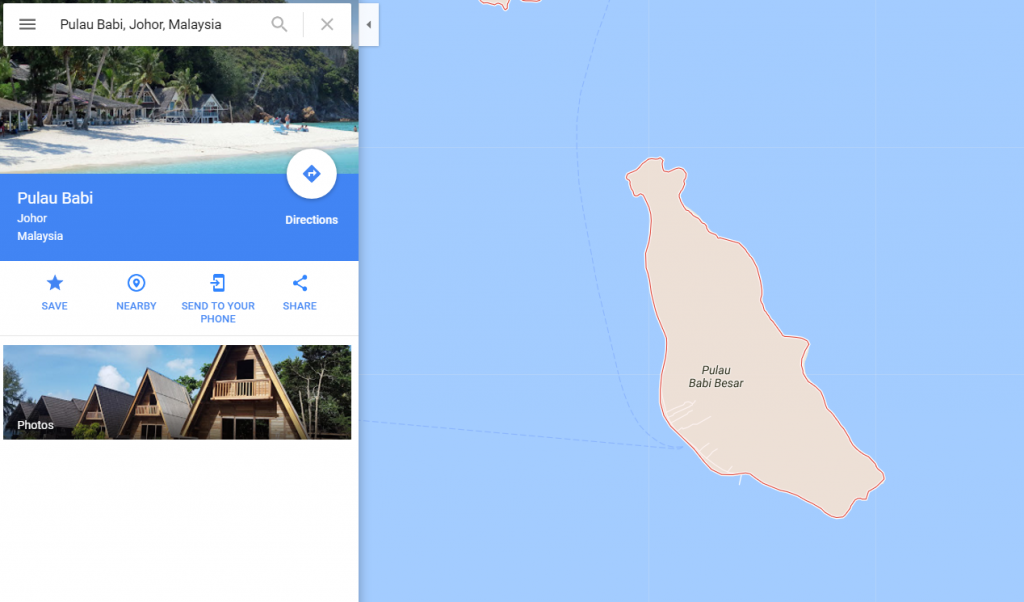 这个岛坐落在柔佛附近, Babi在马来文的意思是“猪”,猪也是马来西亚伊斯兰教的违禁的动物。但这个名字已被改成Pulau Besar, 但还是有很多人记得Pulau Babi这个名字。